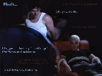 | Okay, this is a visual, not a quote, but it's a nice one: In the hospital, Spike smacks Xander on the back of the head, then reacts as the chip zaps him, so we see them both from behind, simultaneously clutching their heads. Which is fun in and of itself. As they're recovering, we see them from the front again, and they sort of lean on each other for support for a second. Also fun. The part that Mad Poetess sees, and challenges you to look for, is this-- At the end of the leaning, Spike brushes Xander's ass with his hand. Or smacks it. Or at least comes close enough that it can fuel one's obsessive fantasies.